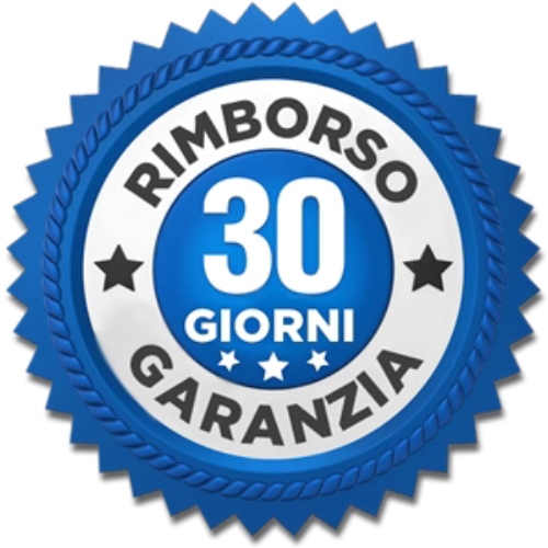 Siamo così sicuri del nostro prodotto che ti offriamo 30 giorni per provarlo. Se non sei soddisfatto dei risultati, contattaci e ti rimborseremo l’intero importo, senza fare domande.